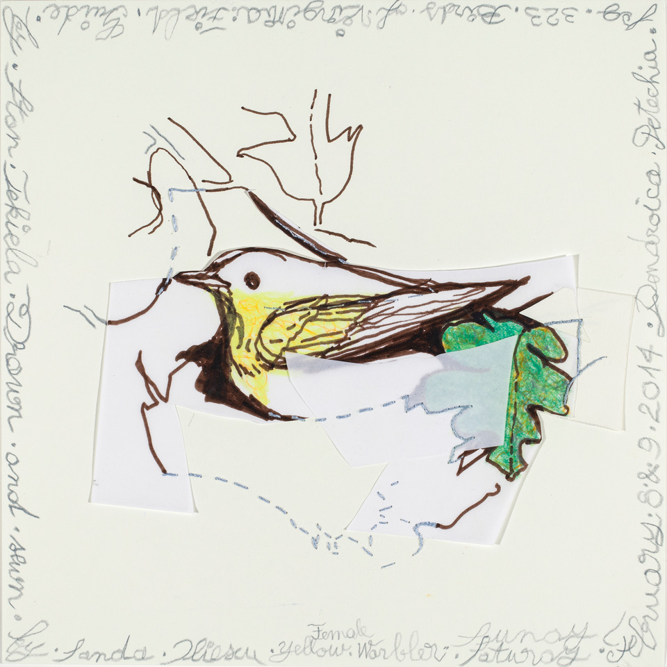 Female Yellow Warbler, Dendroica Petechia, Mixed media on paper, 8 x 8”, 12 x 12 framed, $1200 sold